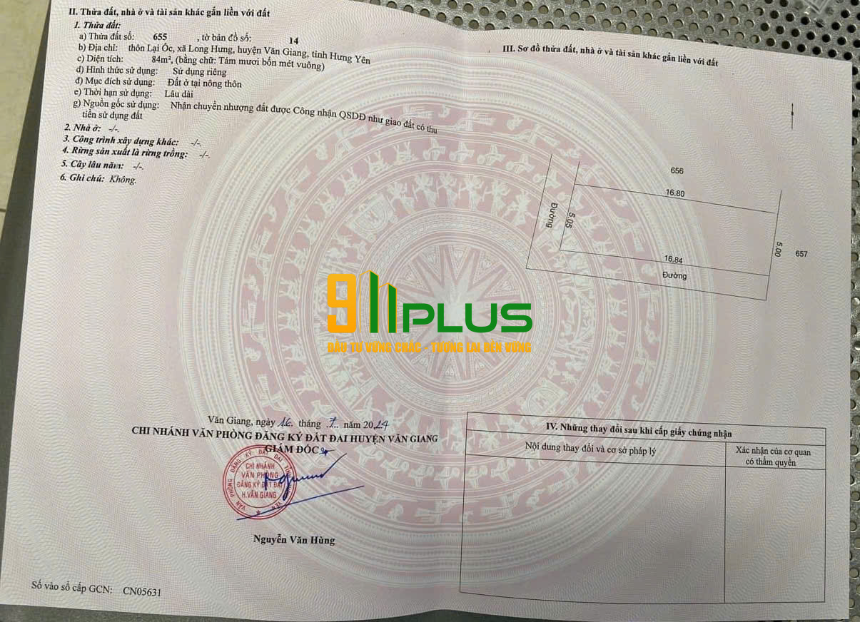 BÁN ĐẤT 84M² LẠI ỐC, LONG HƯNG, VĂN GIANG GIÁ CHỈ 3 TỶ ĐỒNG Vị trí đắc địa, không thể bỏ lỡ!