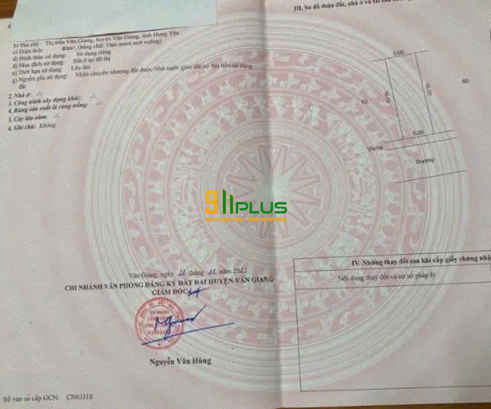 Duy nhất 1 lô – Chủ cần tiền bán rẻ – Cơ hội vàng cho nhà đầu tư Giá liên hệ – Đảm bảo tốt nhất khu vực! Liên hệ ngay để chốt giá: Minh Anh – VP BĐS 911 Plus Văn Giang – 0866.456.911