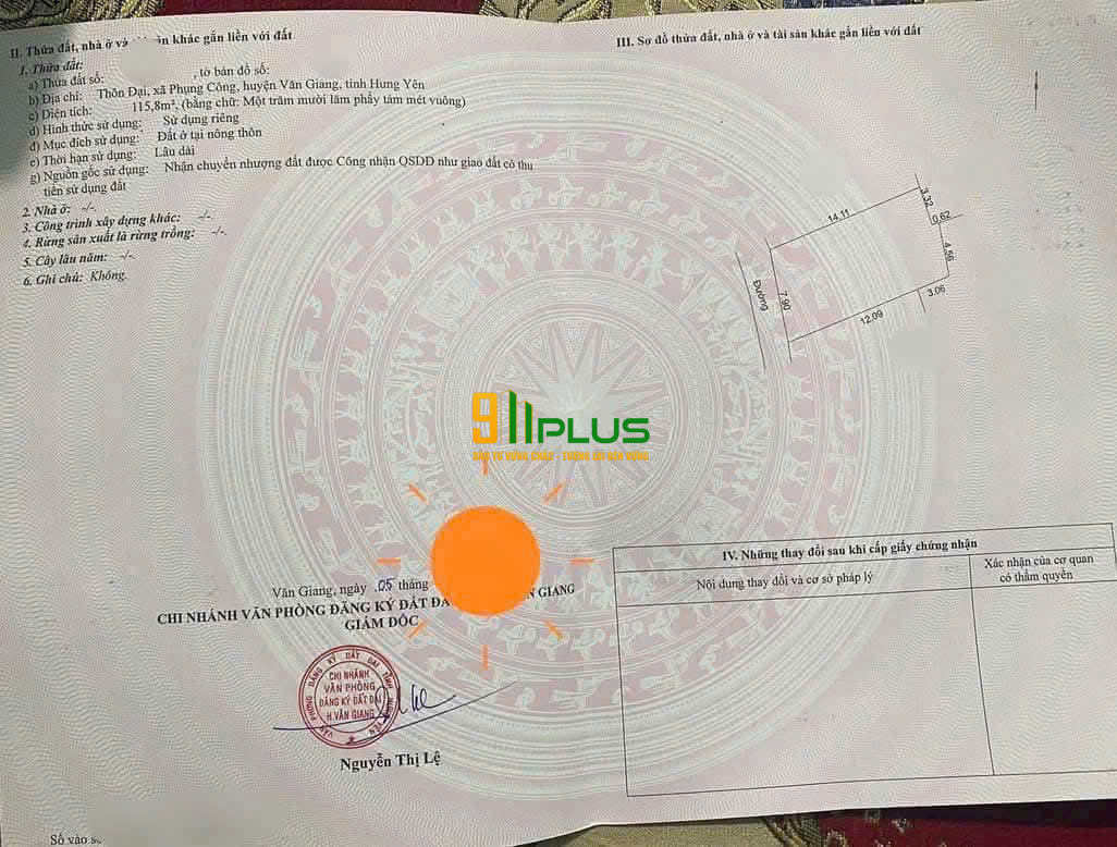 CHÍNH CHỦ BÁN 115.8M² ĐẤT Ở TẠI THÔN ĐẠI – PHỤNG CÔNG, VĂN GIANG